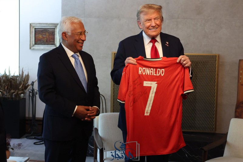 انتشرت صور على نطاق واسع عبر منصة "إكس"، نشرها رئيس المجلس الأوروبي، أنطونيو كوستا، تُظهر الرئيس ترامب وهو يتسلم قميص المنتخب البرتغالي الشهير الذي يحمل الرقم 7، والذي يرتديه رونالدو بشكل دائم.