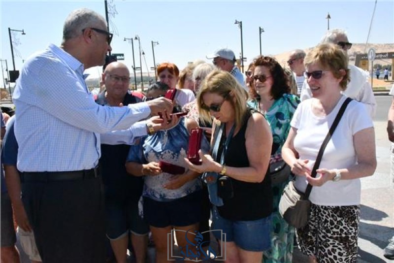 خلال جولة ميدانية لمتابعة سير الأعمال الجارية في مشروع تطوير وتجميل وتوسعة طريق السادات، حرص اللواء الدكتور إسماعيل كمال، محافظ أسوان، على لقاء العديد من الأفواج السياحية الأسبانية التي تزور المحافظة حالياً.
