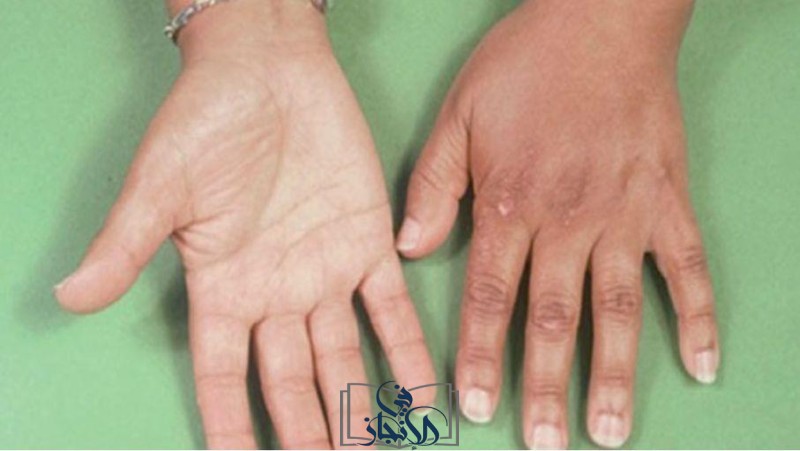 اسوداد الجلد في أماكن معينة مثل المفاصل أو الوجه