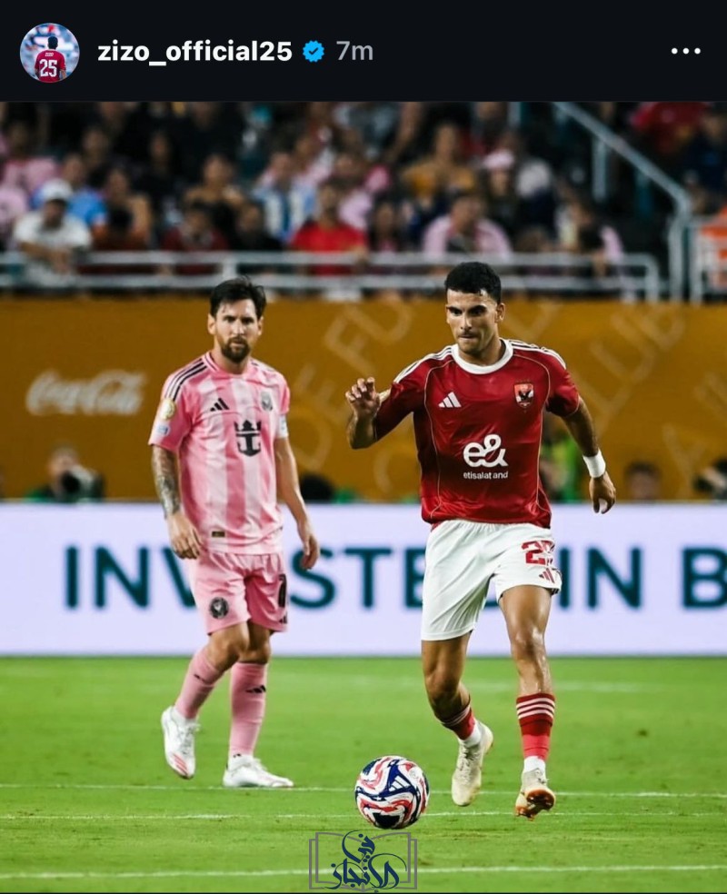 نشر أحمد مصطفى زيزو، نجم فريق الكرة الأول بالنادي الأهلي، صورًا تجمعه بليونيل ميسي، أسطورة كرة القدم ولاعب فريق إنتر ميامي الأمريكي، وذلك خلال المواجهة التي جمعت الفريقين في افتتاح بطولة كأس العالم للأندية المقامة حاليًا في الولايات المتحدة الأمريكية.
