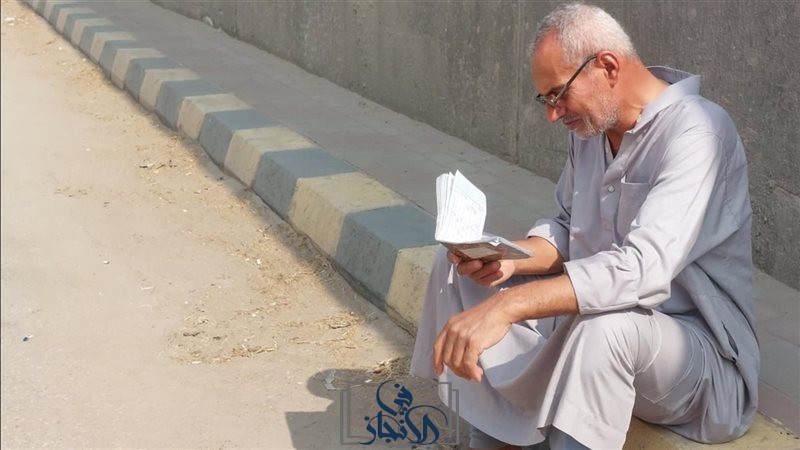 يتلو آياته بخشوع ويدعو الله عز وجل أن ييسر على ابنه امتحان اليوم.